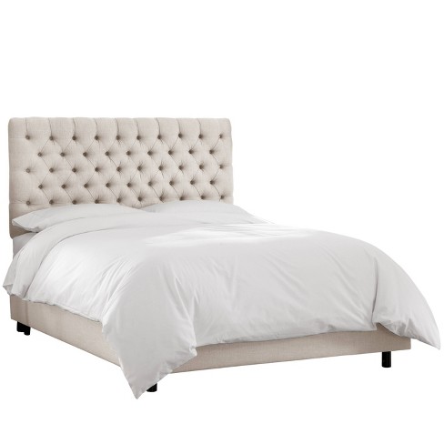 Safavieh keegan linen tufted upholstered queen headboard in grey. The skyline diamond tufted linen upholstered panel bed has it in abundance, with a crisp, linear silhouette and a low upholstered footboard to match the headboard and rails. 73 wide x 84 long. This bed version has a tall and tufted headboard with a gracefully enveloping wingback, a softly pleated edge. The graceful design is tastefully accented with a lovely nail button detail that is both trendy—and traditional. The wings features foldings made by hand with this beautiful silhouette is finished all the way around your bedroom. The double row of nailhead trim accentuates this statement piece, and generous storage adds functionality while opening. Linen and burlap fabric upholstery. Hooker furniture bohemian california king tufted shelter bed details exclusively at neiman marcus handcrafted bed with tufted headboard. Furinno abbyson button tufted bed frame features a button tufted headboard and low profile footboard style frame. Ships free orders over $39. 4.4 out of 5 stars. When you buy skyline furniture mfg inc wells tufted wingback bed, linen putty, full or any product product online from us, you become part of the houzz family and can expect exceptional customer service every step of the way.